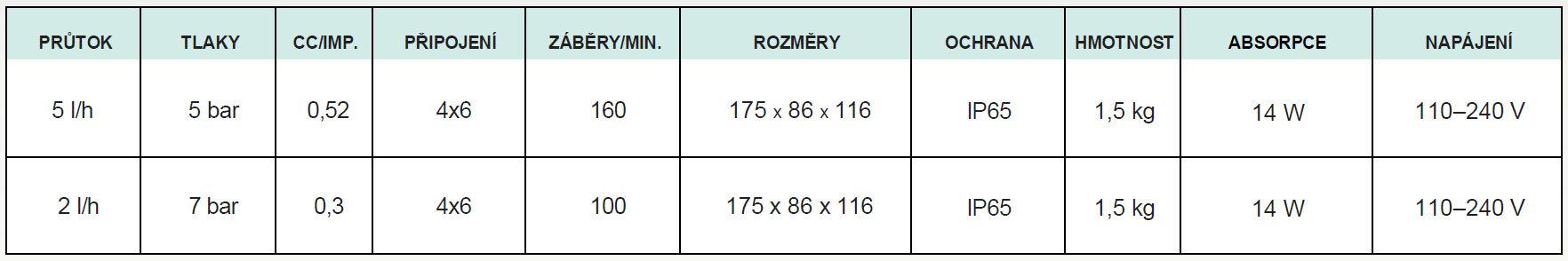 Dávkovací čerpadlo INJECTA OLIMPIA BP, 2 až 5 l/hod., max. 7 barů