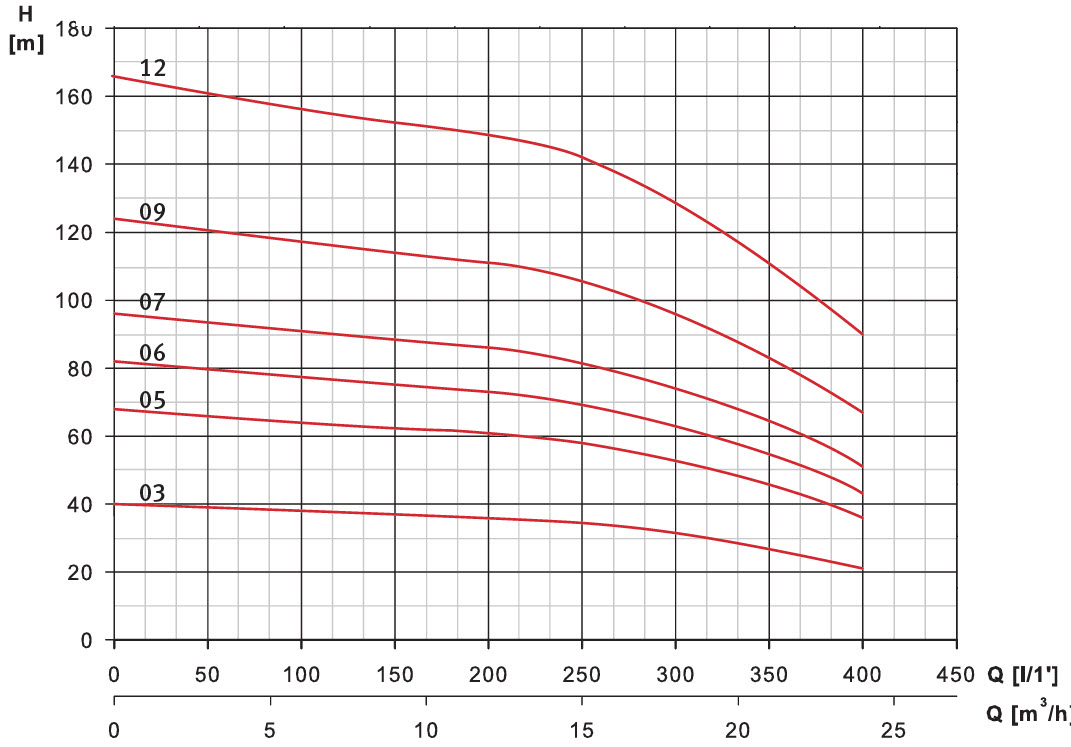 Odstředivé vertikální celonerezové čerpadlo, průtok 0 až 24 m3/hod., dopravní výška 65 až 36 m. Vhodné pro trvalý provoz.