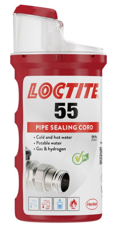 LOCTITE® 55 je navržen pro těsnění kovových a plastových trubek a armatur. Nevyžaduje žádnou dobu nutnou k vytvrzení a výsledkem je okamžité utěsnění, které je plně odolné vůči tlaku. Ideální volba pro rychlé, snadné a spolehlivé těsnění.