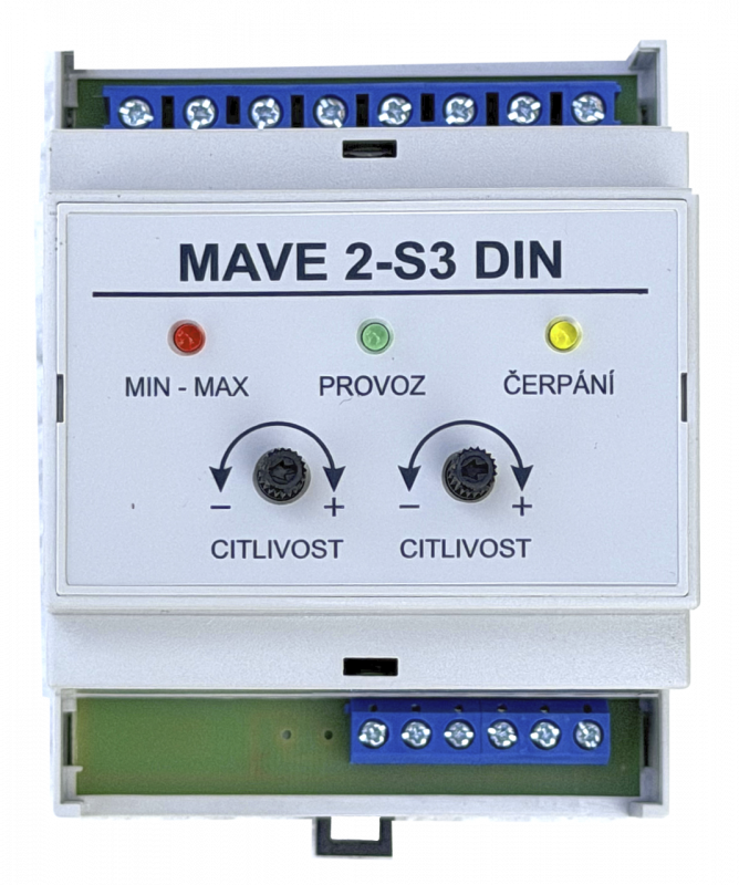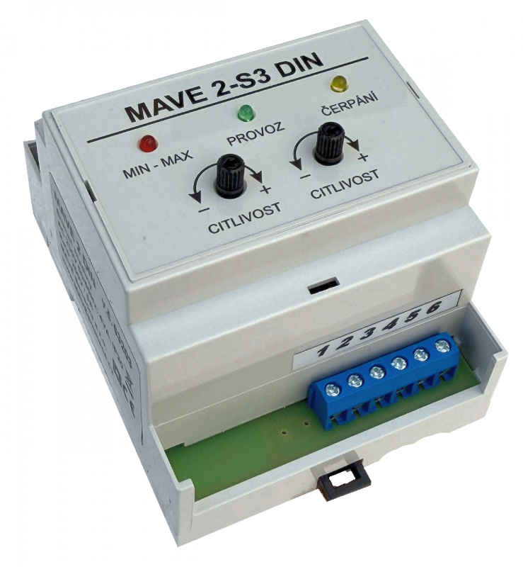 Na indikaci až 3 úrovní hladin (min. a max. hladina ve studni/vrtu, nebo v nádrži, z které se voda čerpá, a max. hladina v nádrži, do které se voda čerpá) je určeno zařízení MAVE 2-S3.