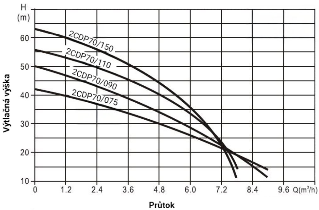 Celonerezové čerpadlo, průtok 0 až 9 m3/hod., dopravní výška 42 až 14 m. Podobné jako EBARA 2CDX 70/10.