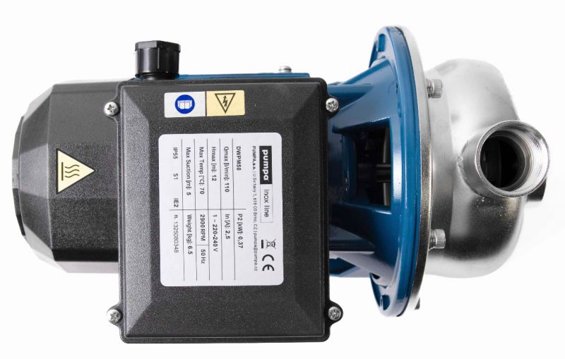 Odstředivé celonerezové povrchové čerpadlo s otevřeným oběžným kolem PUMPA INOX LINE DWP osazené asynchronním motorem.