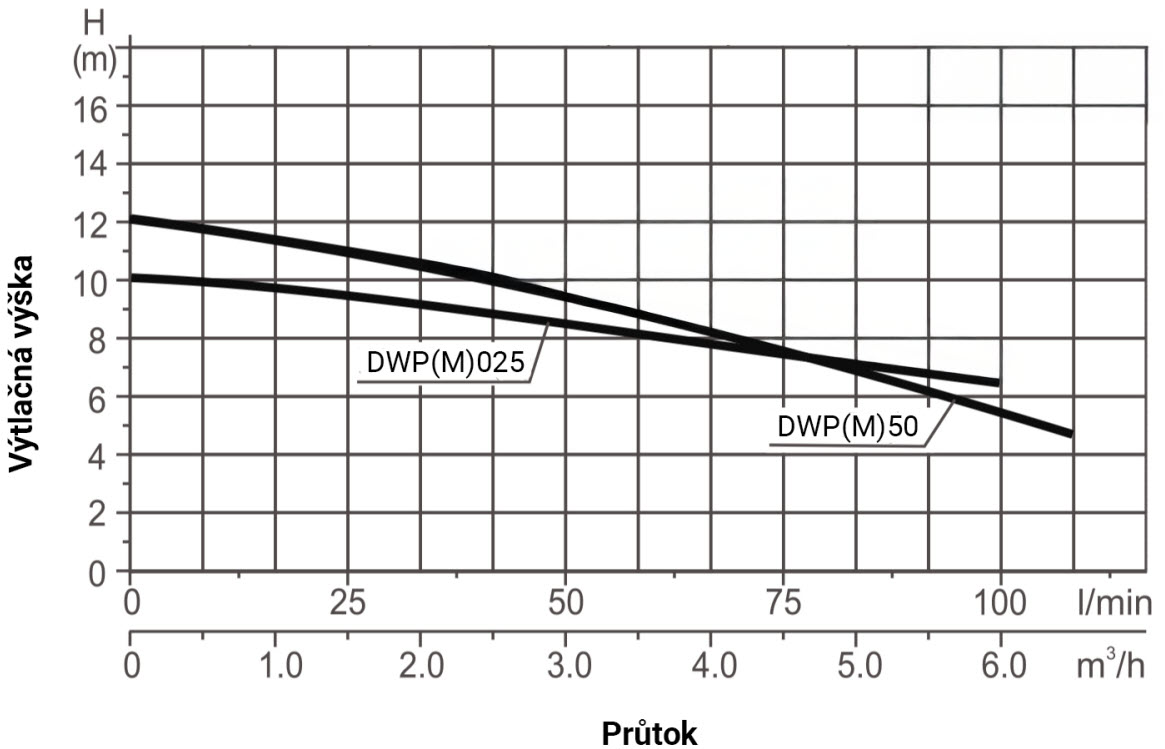 Max. velikost pevných částic 8 mm (DWP100: 10 mm, DWP150-400: 19 mm).