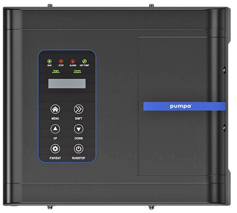 Na řídící jednotce nastavíte tlak, který chcete mít v rozvodu vody. Řídící jednotka tlak kontinuálně měří a podle jeho změny buď zvyšuje nebo snižuje změnou frekvence otáčky elektromotoru čerpadla, čímž přizpůsobuje jeho výkon aktuální spotřebě. Součástí řídící jednotky je tlakové čidlo, které měří tlak v rozvodu vody. Automatika porovnává naměřenou a nastavenou hodnotu tlaku vody a podle výsledku je výkon čerpadla buď snižován, nebo zvyšován změnou frekvence elektrického proudu, který pohání elektromotor čerpadla.